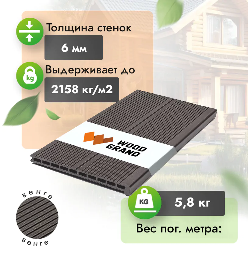 • Безупречное качество изделий, террасная ступень из ДПК соответствует ГОСТу Р 59555-2021.